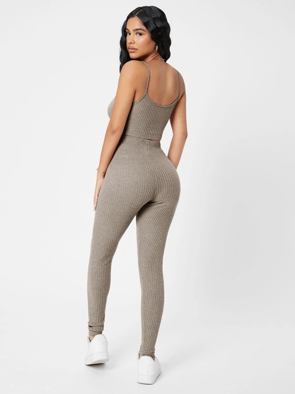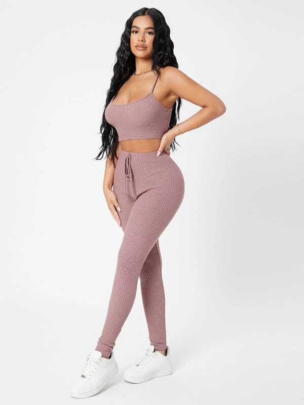 Petite waffle leggings clearance, SHEIN PETITE Waffle Knit Cami Top And clearance