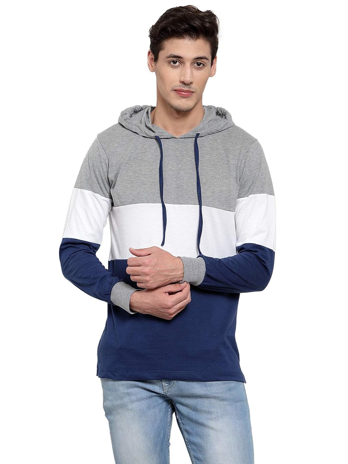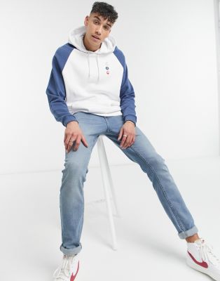 White hoodie with blue sleeves clearance