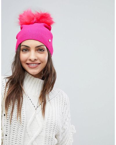 Ted baker pink bobble hat clearance, Ted Baker Double Pom-pom Hat in Bright clearance