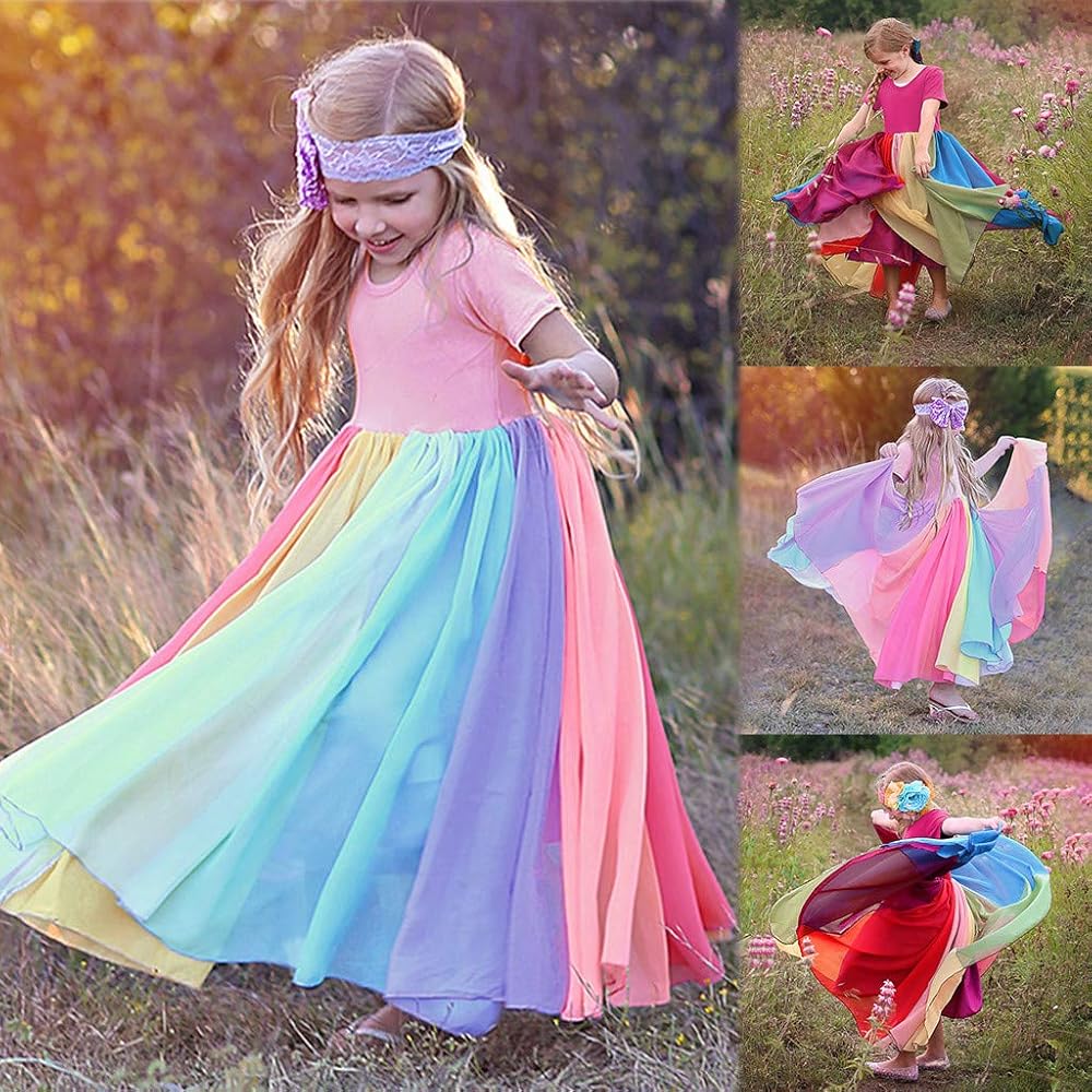 Sommerkleid rainbow clearance, BIBOKAOKE Sommerkleid Mädchen Chiffon Regenbogen Kleid Urlaub Strandkleid Elegantes Party Kleider Sonnenkleid Süßes Rainbow Beach Böhmische Kleider A-Linie Regenbogen Prinzessinenkleid 90-140 : Amazon.de: Fashion clearance