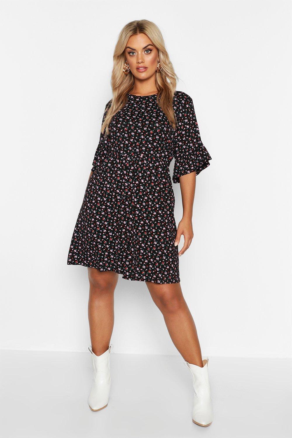 Boohoo ditsy floral smock dress clearance, Plus Ditsy Floral Smock Dress | boohoo clearance