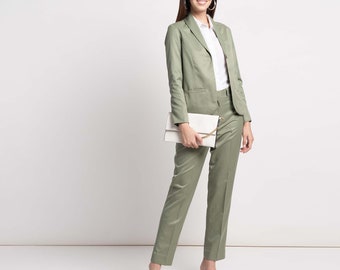Sage green trouser suit clearance, Sage Green Cotton Suit | Custom Made by clearance