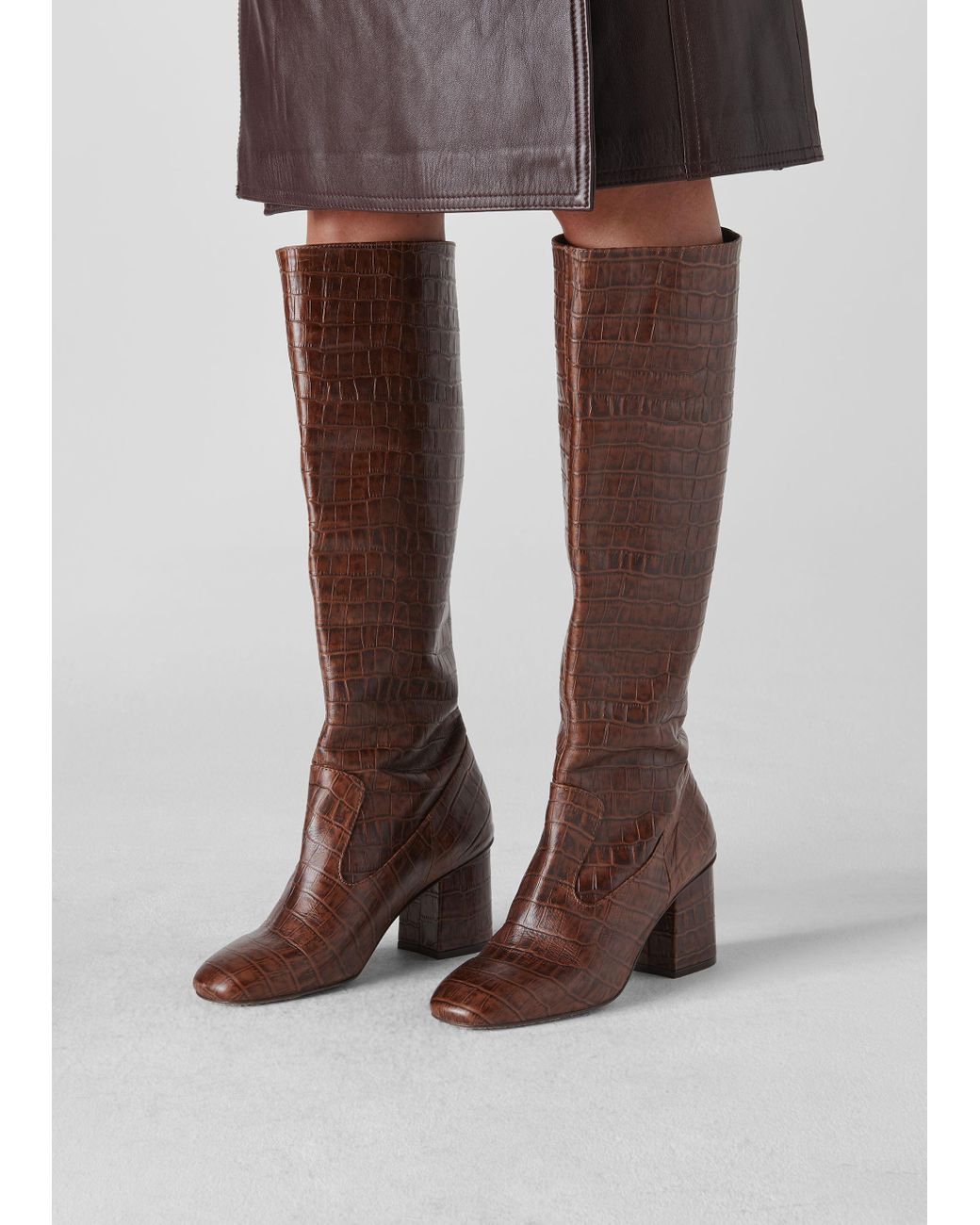Brown croc knee boots clearance, Whistles Leather Hazel Croc Knee High clearance