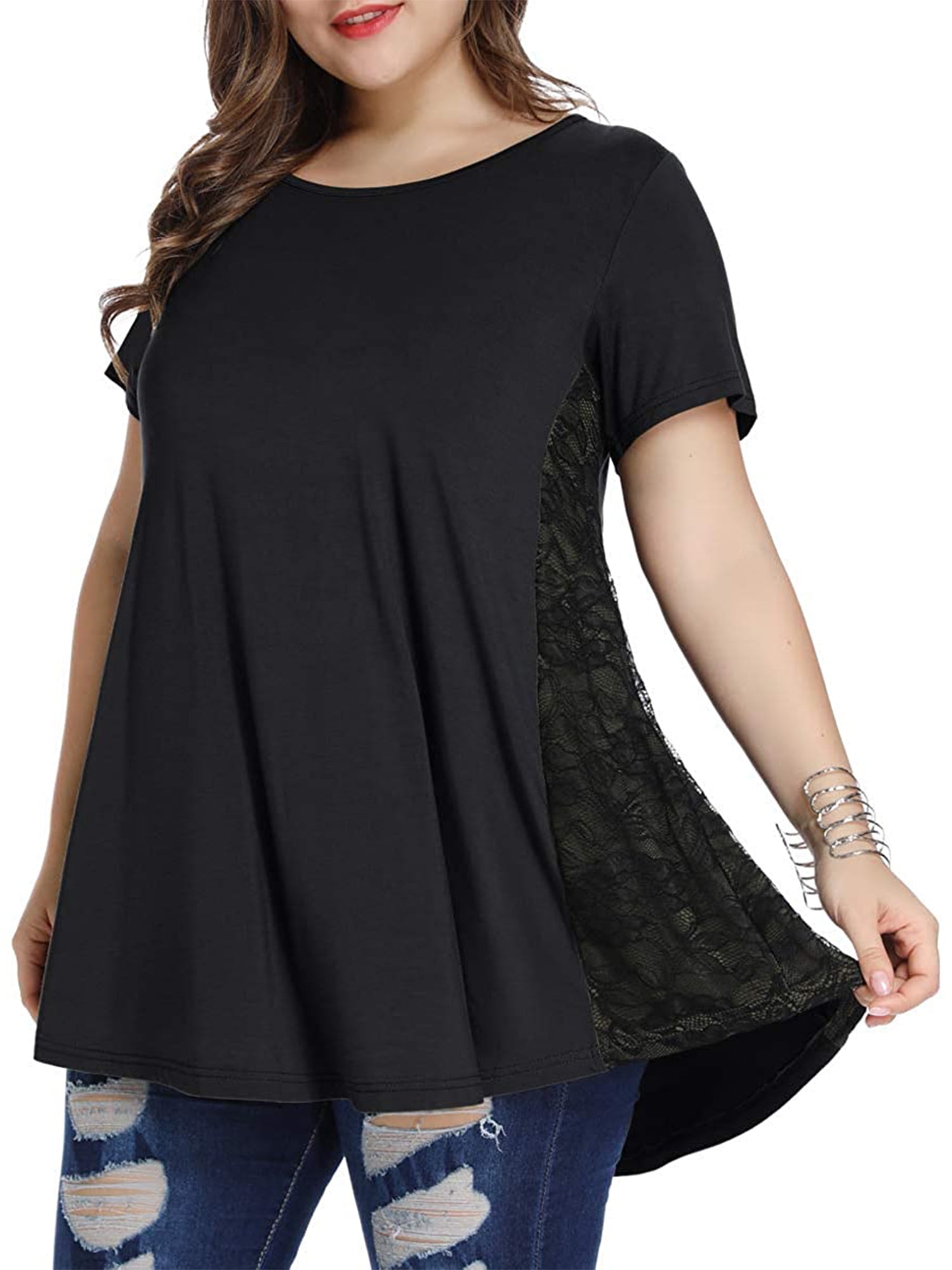 Walmart plus size tunic tops clearance, Short Sleeve Lace Patchwork Blouse clearance
