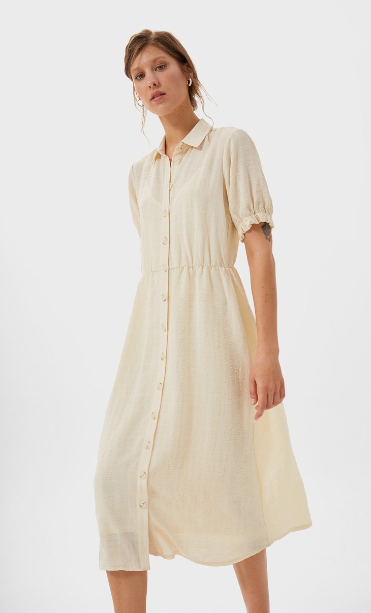 Puff sleeve midi dress stradivarius clearance, Stradivarius button front midi dress clearance