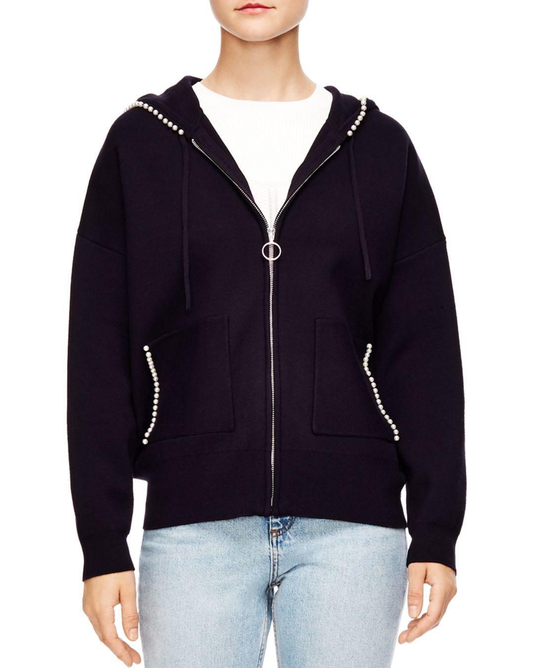 Sandro pearl hoodie clearance, Sandro Reine Pearl-Embellished Zip-Up clearance