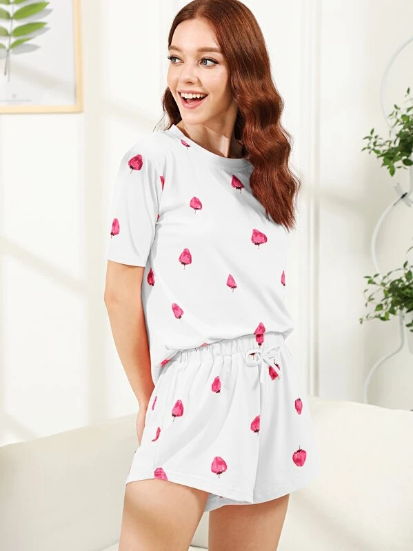 Shein strawberry pajamas clearance, Strawberry Print Pajama Set | SHEIN USA clearance
