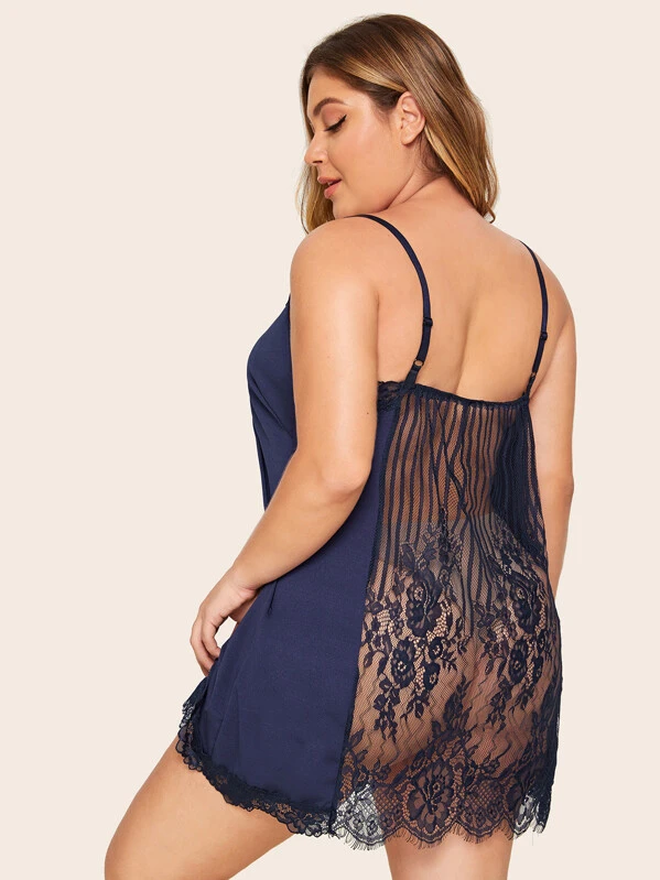 - Shopping Plus contrast lace cami dress