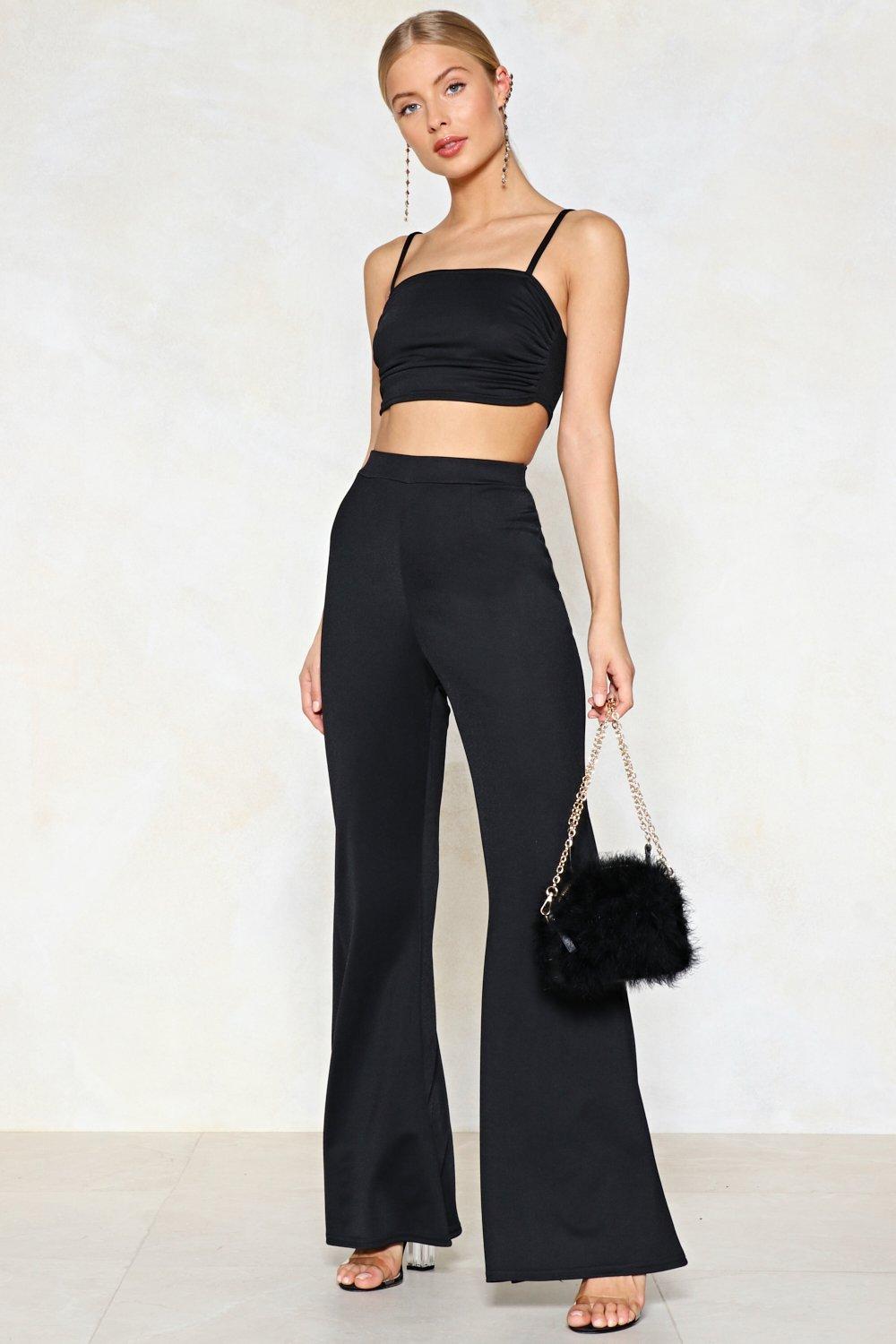 - Flared trousers and crop top clearance