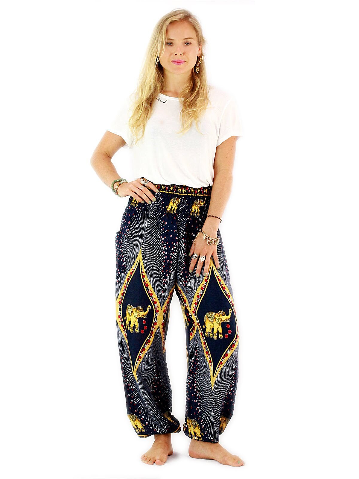Blue and gold pants clearance, Navy Blue Gold Elephant Pants Hippie clearance