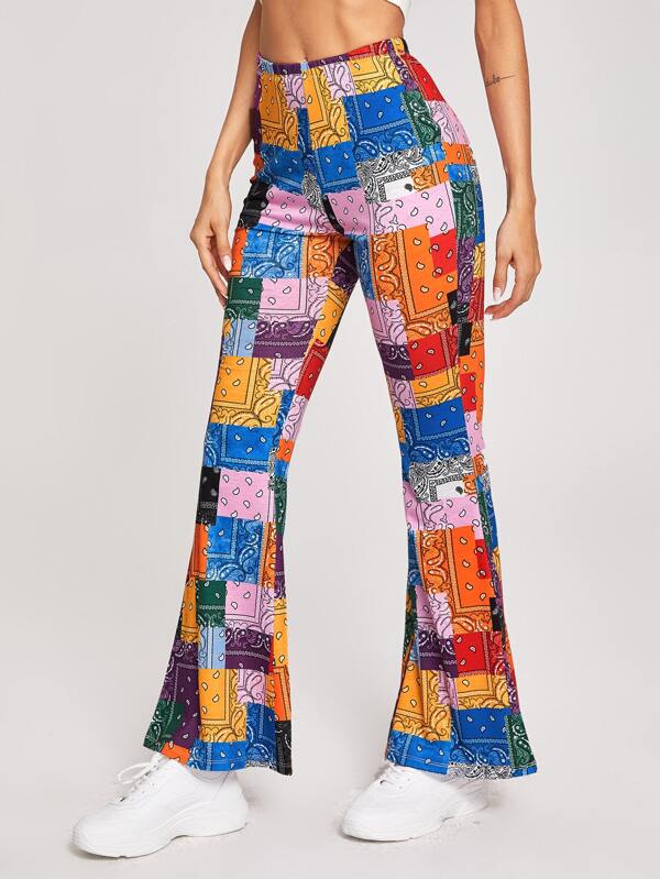 Shein boho pants clearance, Flare Leg Tribal Print Pants | SHEIN USA clearance