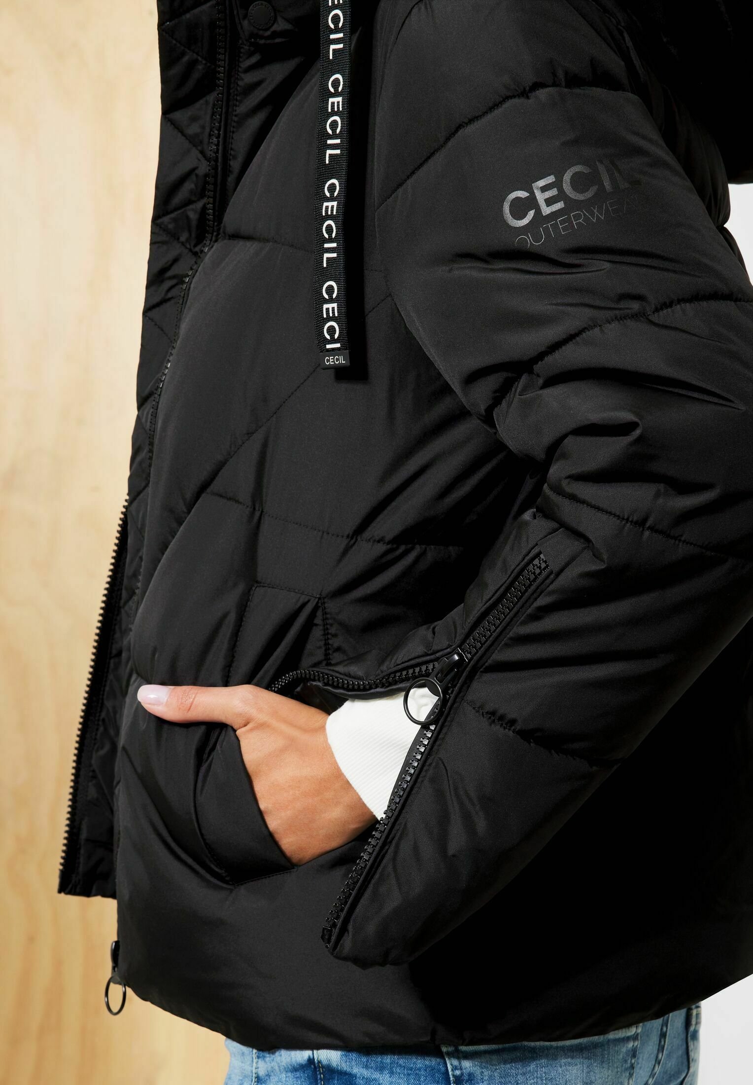 Cecil damen winterjacke schwarz clearance