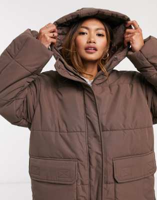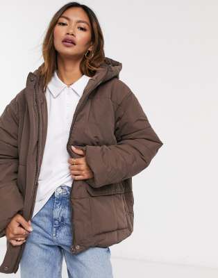Asos design puffer jacket brown clearance