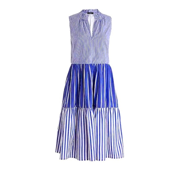 - Sleeveless tiered popover dress in mixed stripe sale online