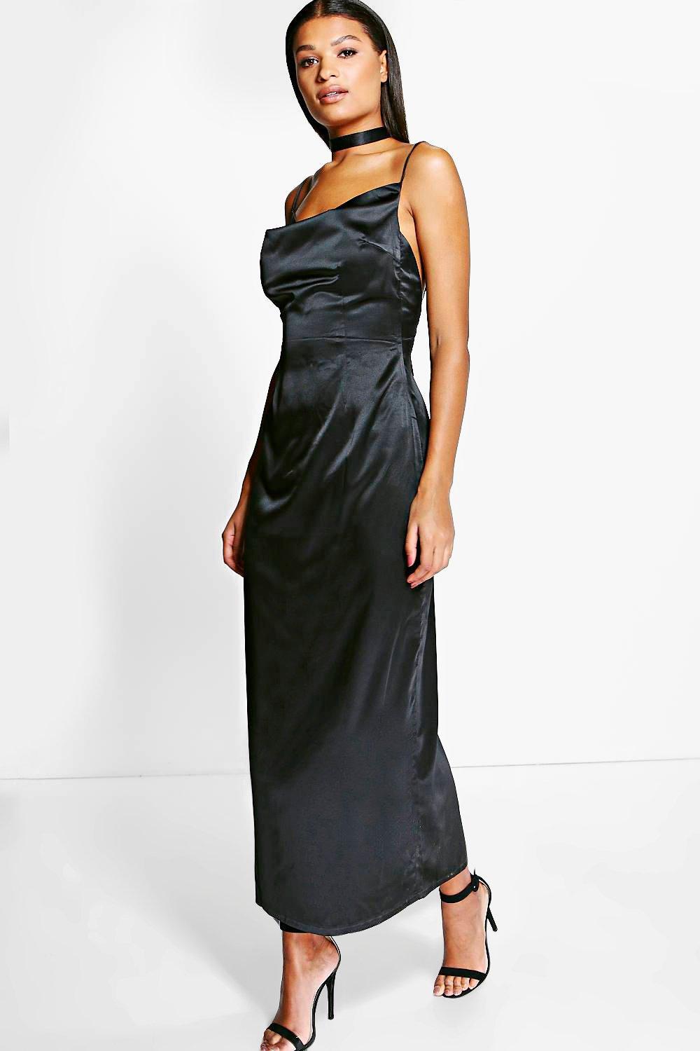 - Black satin cowl neck maxi dress shop