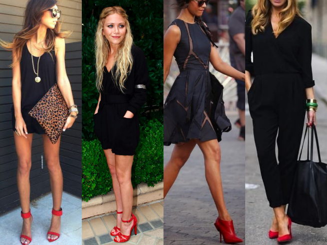 - Black dress and red shoes outfit