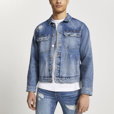 - River island mens denim jacket sale online
