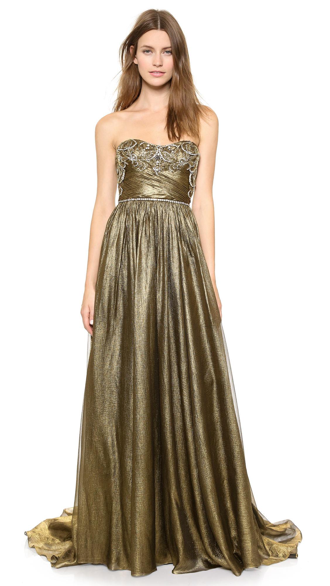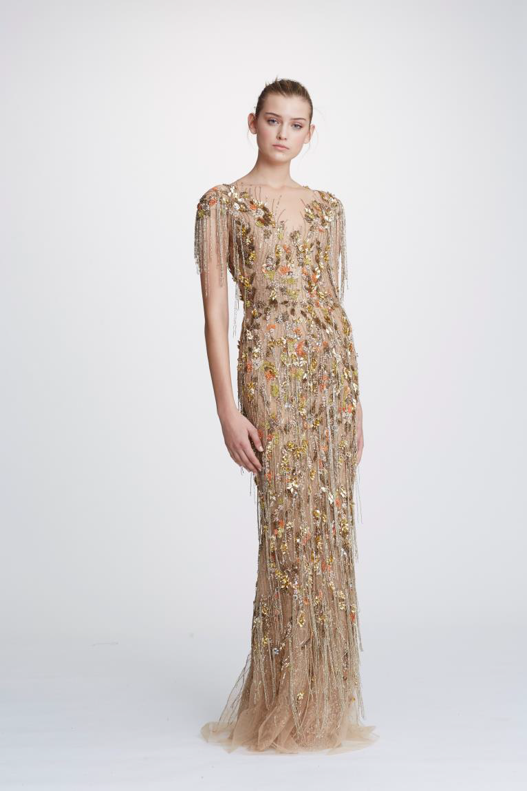 Marchesa gold dress clearance
