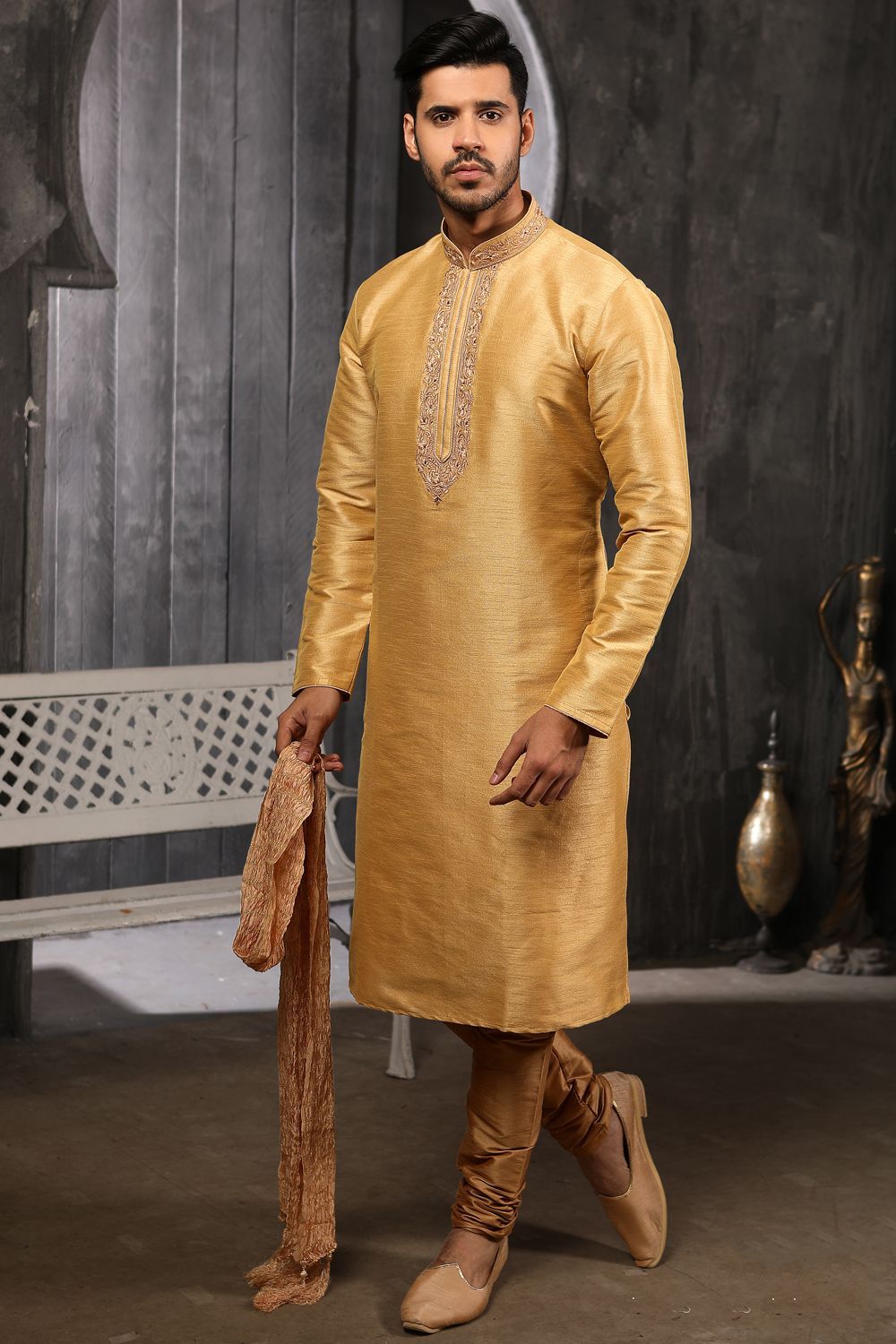 Silk kurta pajama clearance, Gold Plain Raw Silk Kurta Pajama clearance