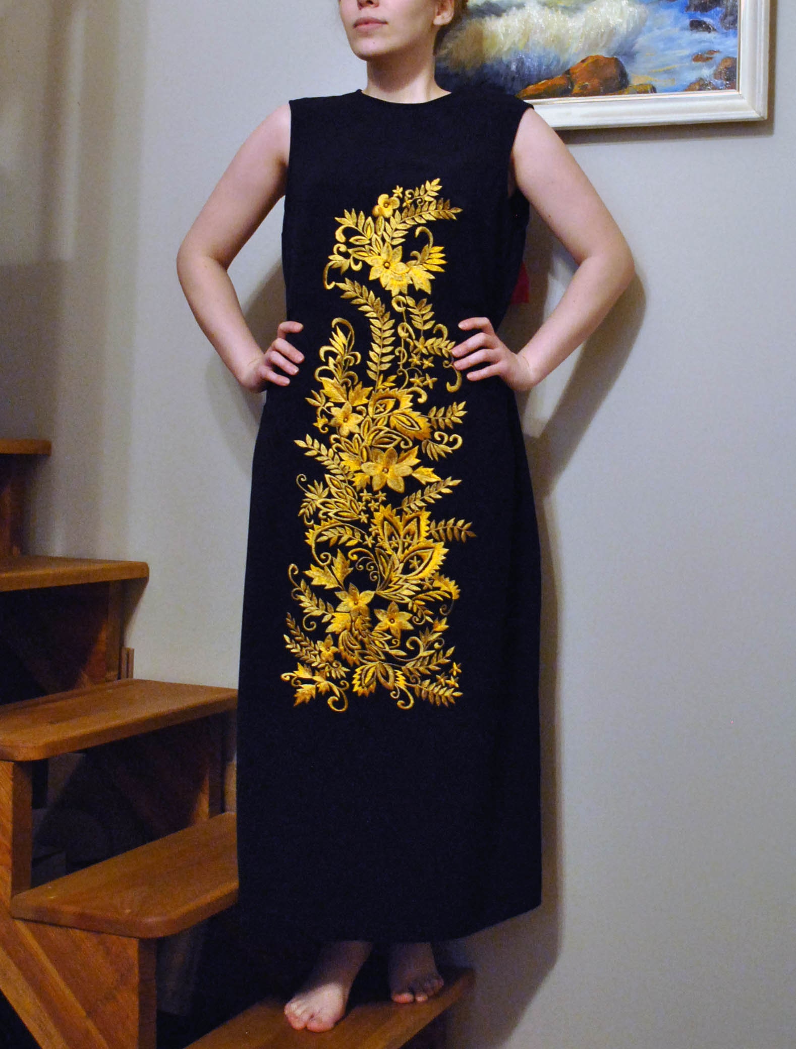 - Hand embroidery black dress