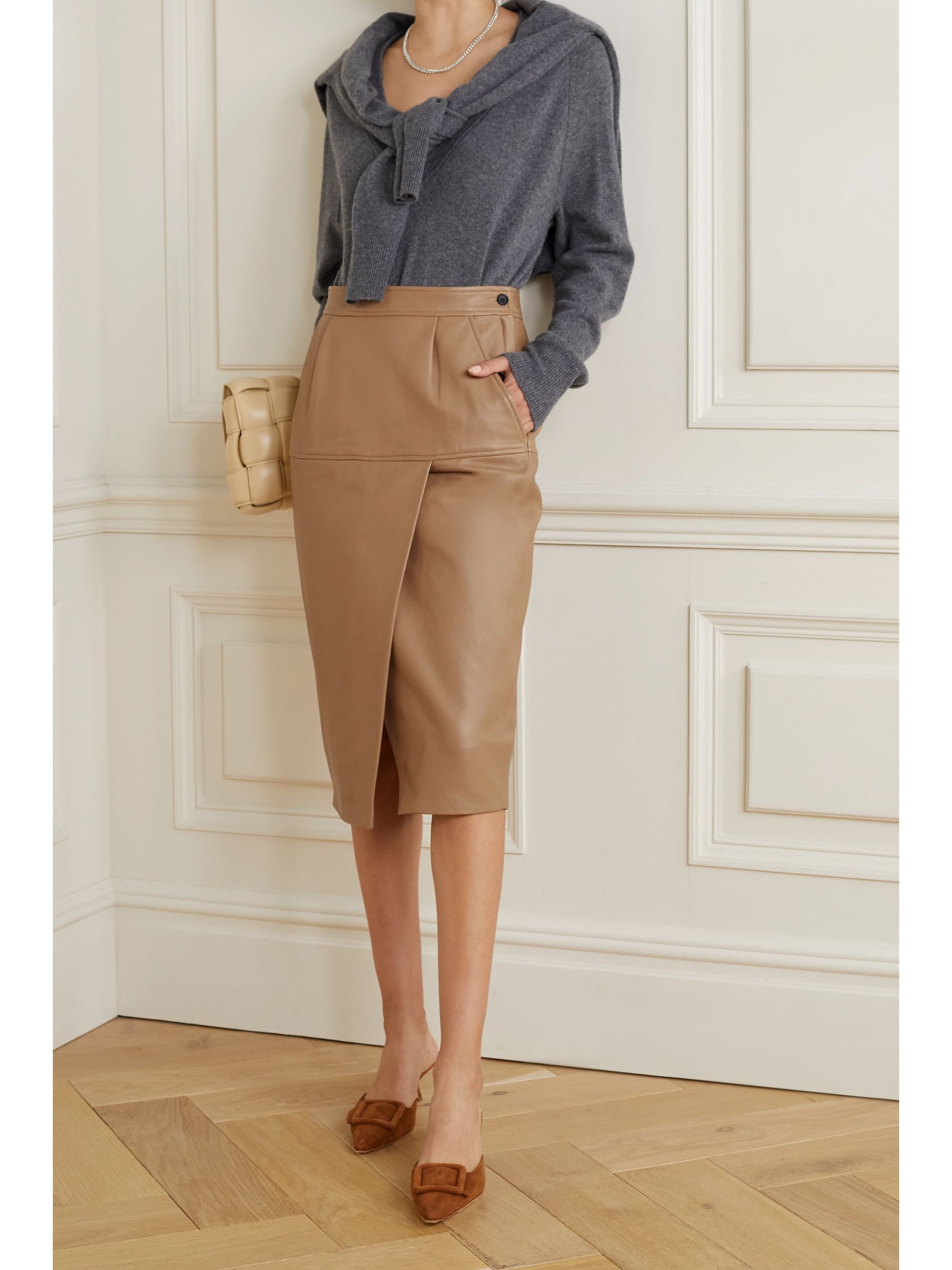 Leather beige skirt clearance