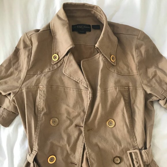 Guess khaki jacket clearance, Guess Jeans Tan Safari Jacket With Gold clearance
