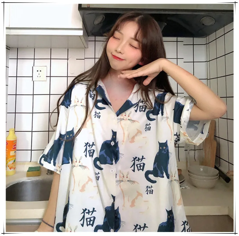 Short sleeve oversized button up shirt clearance, Oversized Japanese Style Button Up T clearance