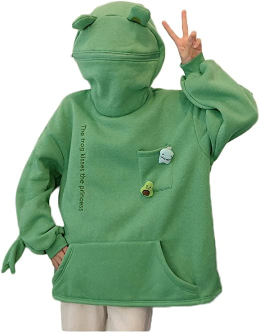 Oversized frog hoodie clearance, Modakawa Frog Letter Zipper Pocket clearance