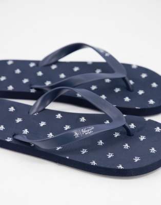 Penguin flip flops clearance, Original Penguin wide fit logo print clearance