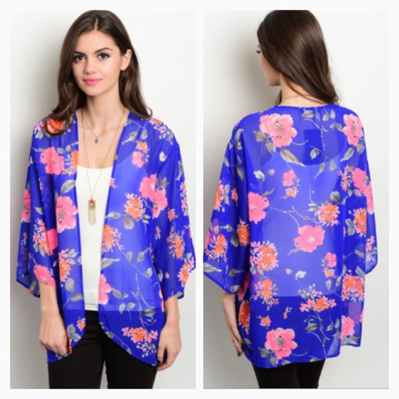Blue floral kimono clearance