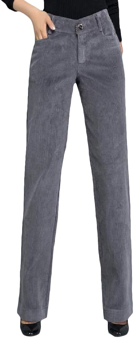 Women's high rise pants clearance, H&E Women Casual Corduroy Straight Leg High Rise Trousers Formal Pants Gray L: Amazon.co.uk clearance