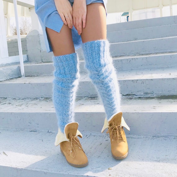 Angora thigh high socks clearance, Long socks Angora wool socks Thigh high clearance