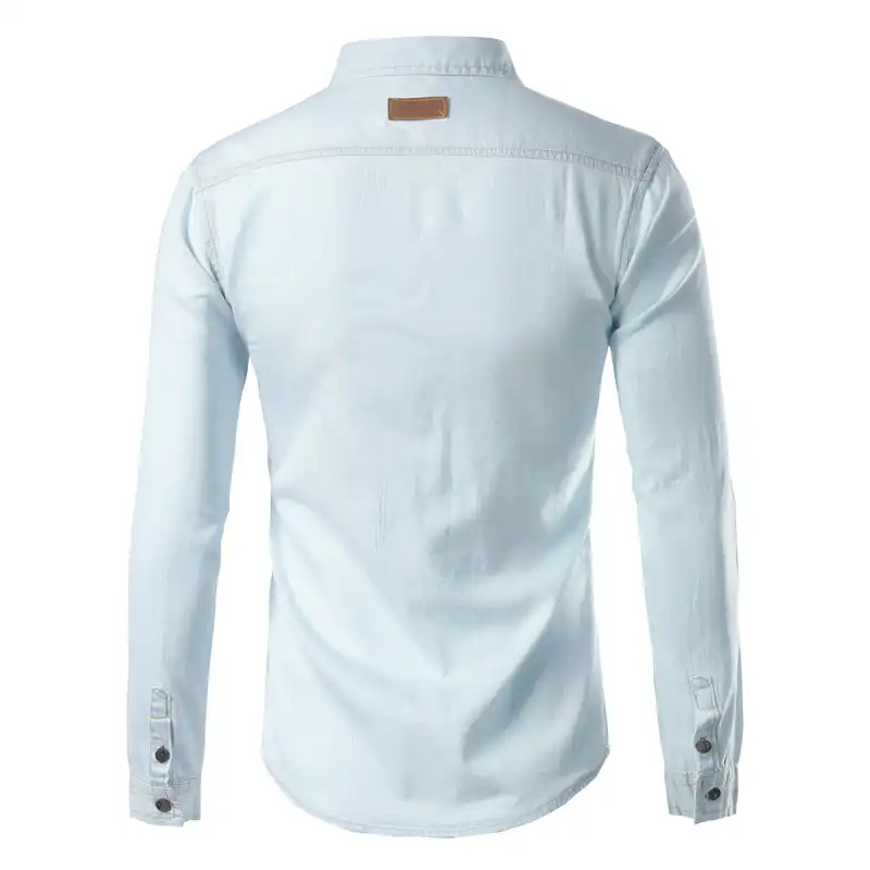 Mens white denim shirt long sleeve clearance, White Denim Shirt Men Brand Design Long clearance