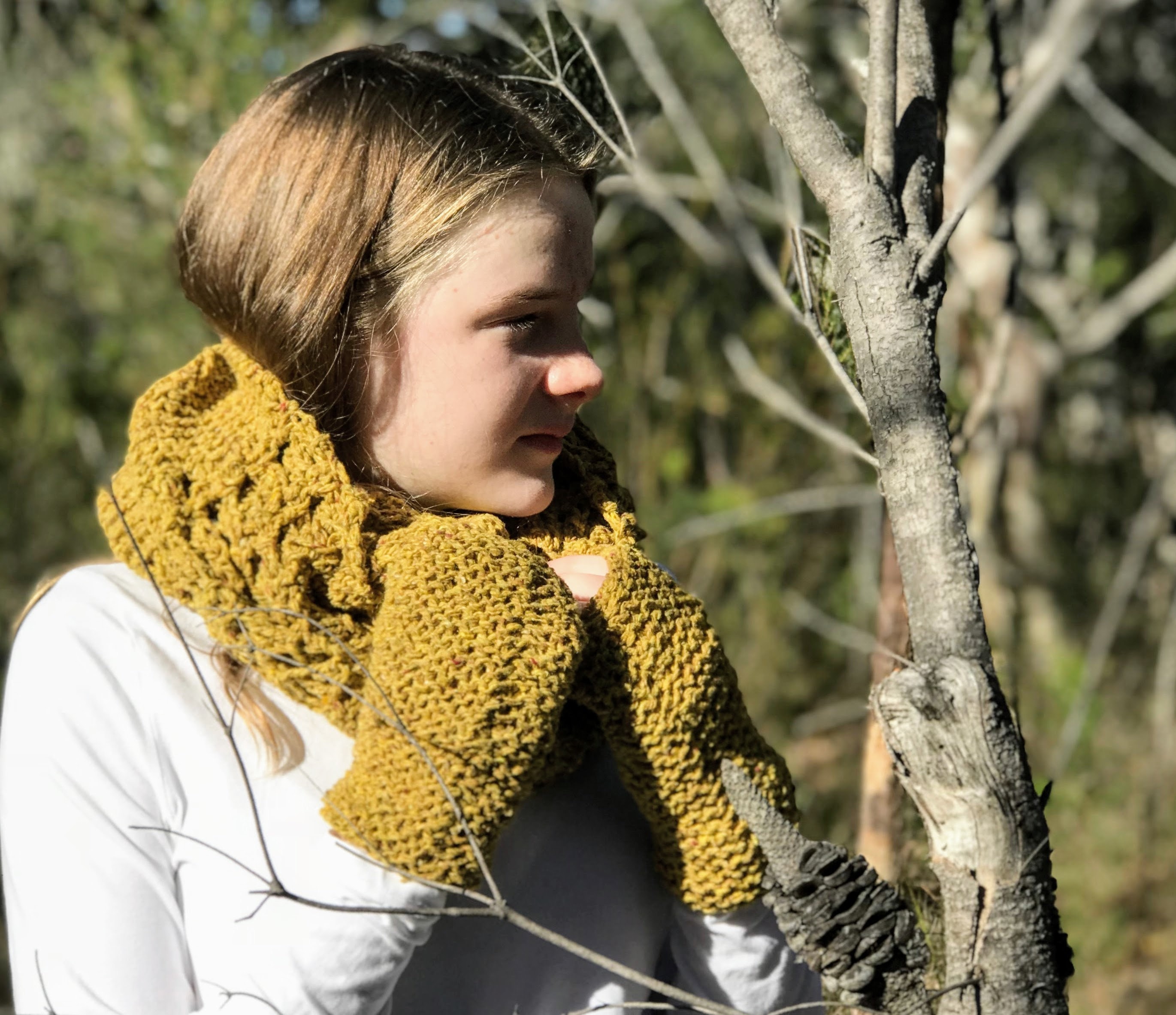 - Mustard gloves and scarf