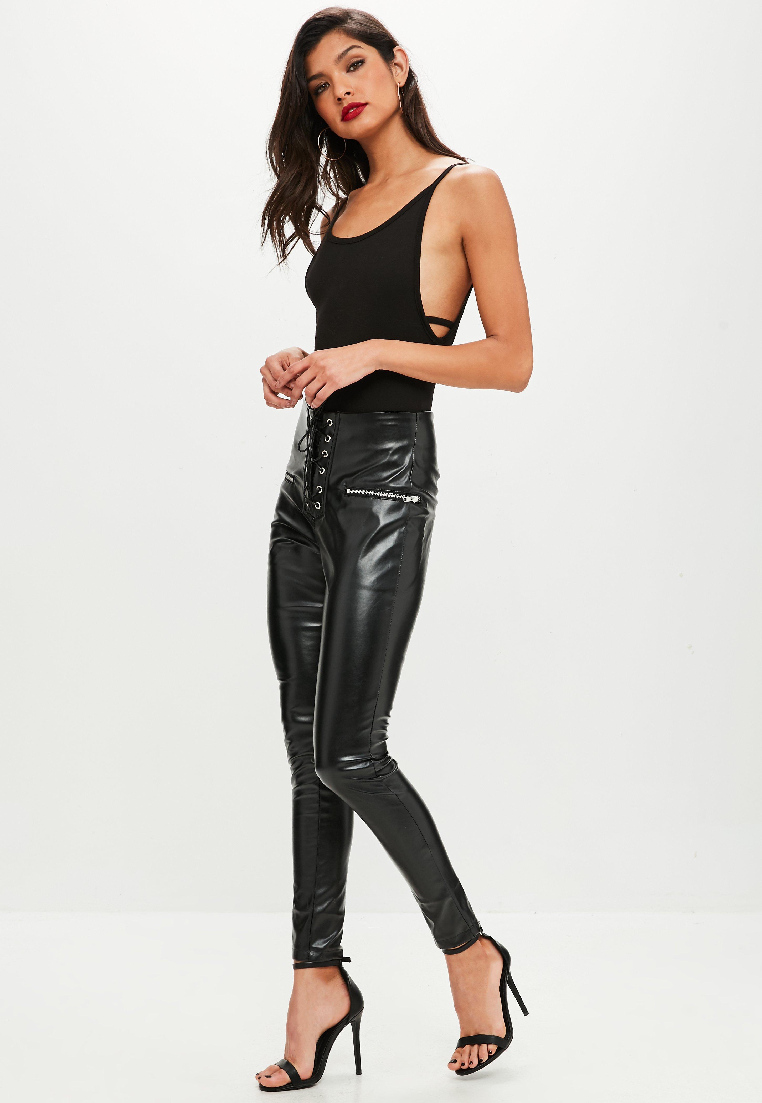 Lace up pu pants clearance