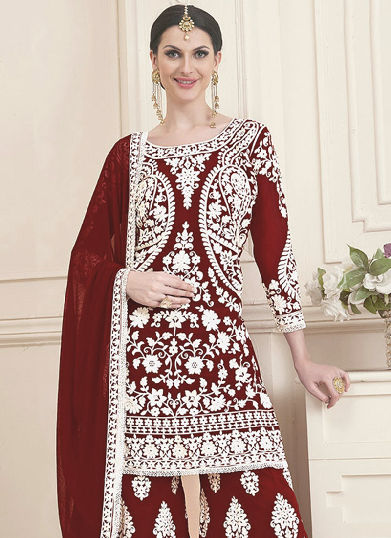 Sharara for wedding online shopping clearance, Buy Maroon Georgette Sharara Suit Party Wear, Embroidered, sharara suit Online Shopping clearance