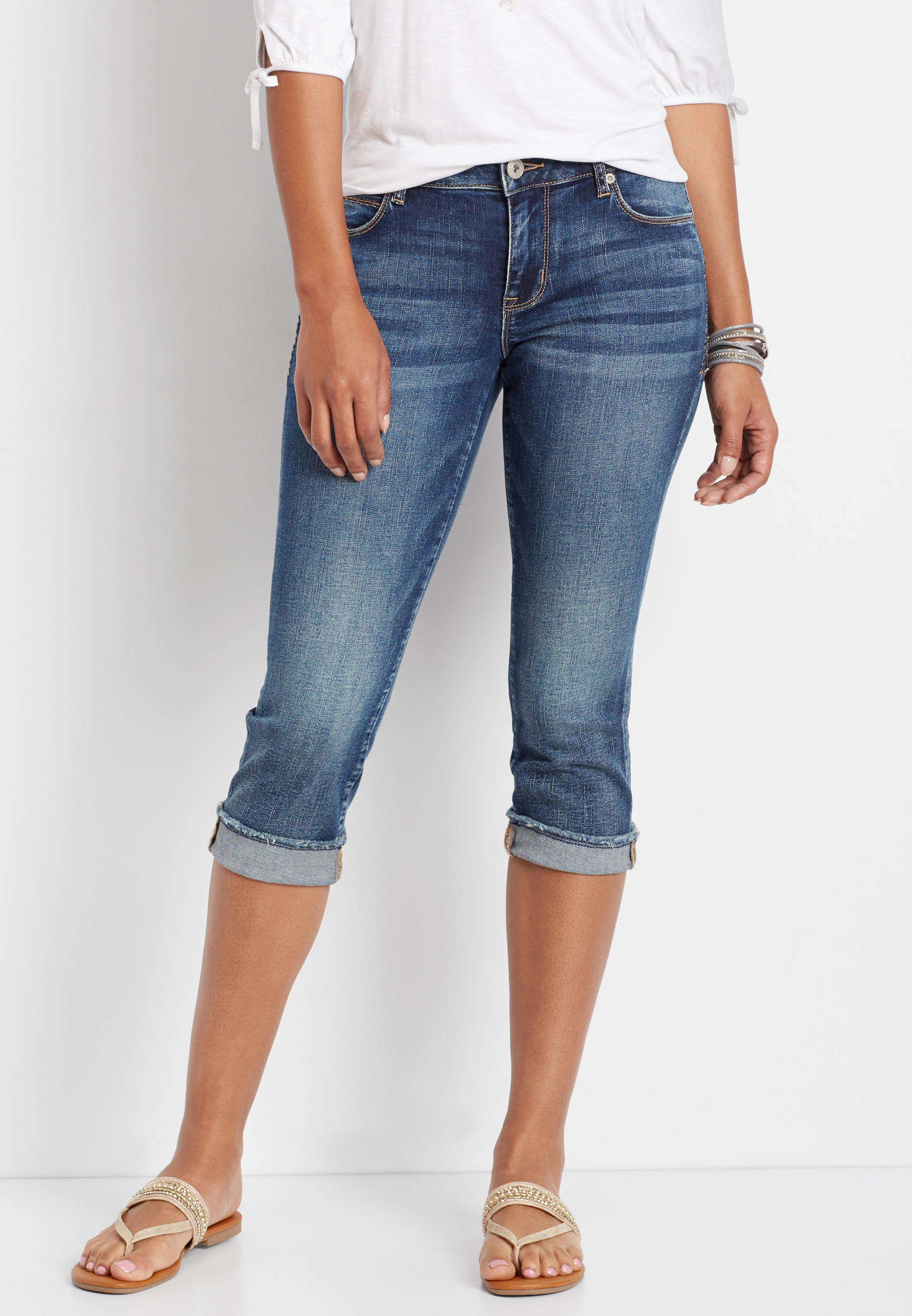 Frayed capri jeans clearance