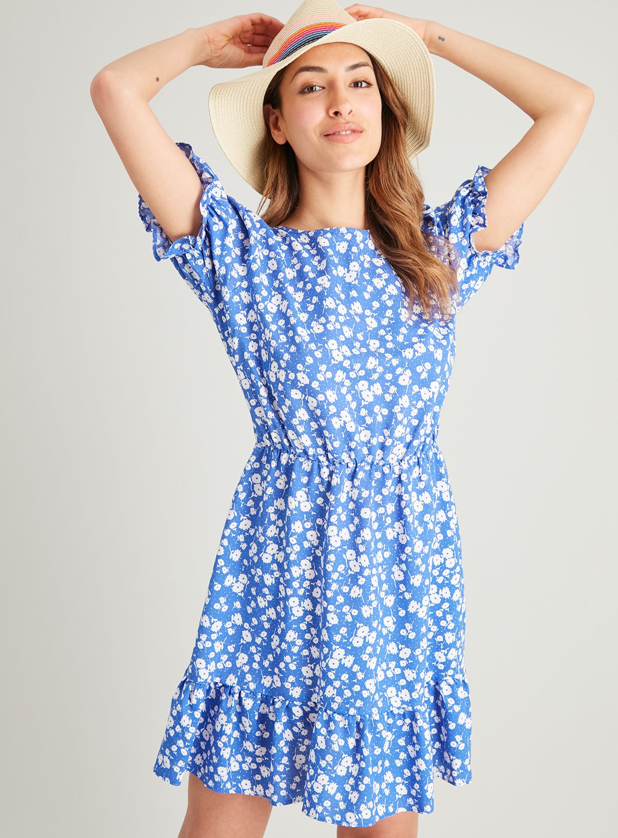 Blue floral tea dress clearance