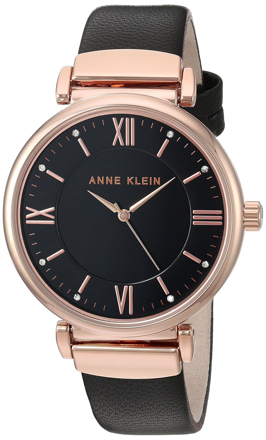 Anne klein leather dress clearance, Gold-Tone and Black Leather Strap Watch clearance