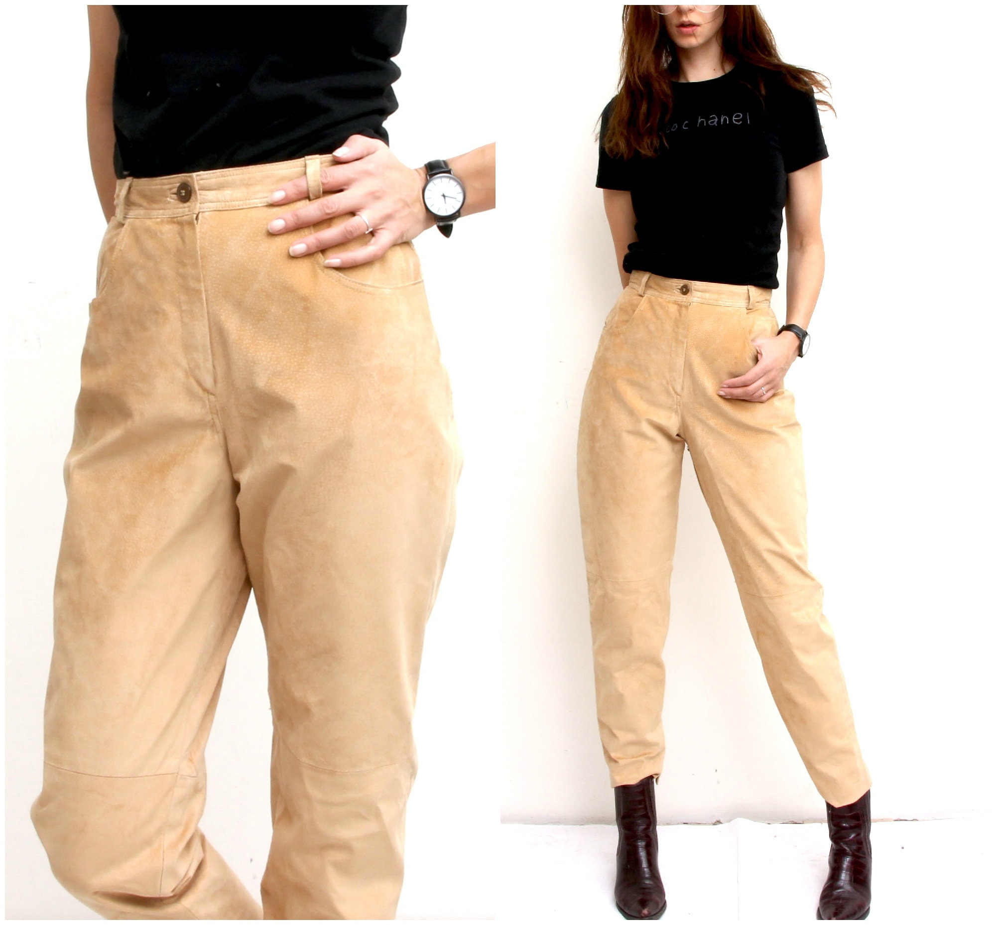 Beige suede trousers clearance
