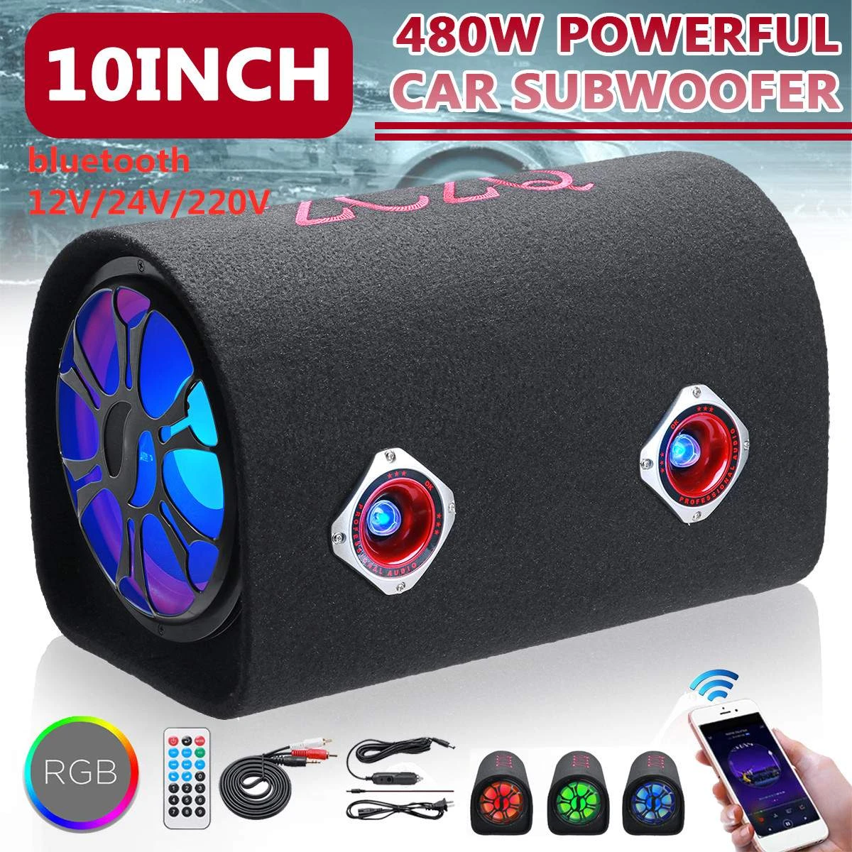 Car speaker box with amp clearance, 10 inch 480W LED bluetooth Car Audio clearance