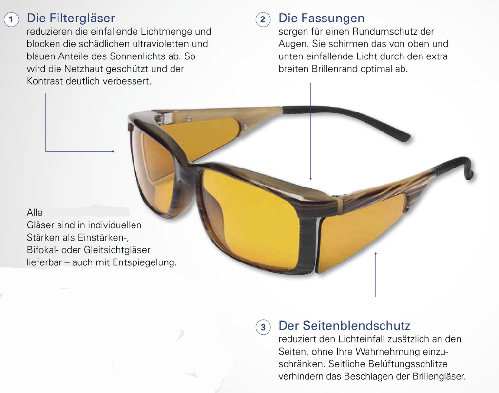 Sonnenbrille bei makuladegeneration clearance, Filtergläser clearance