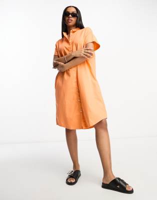 Monki hemdblusenkleid clearance, Monki – Mittellanges Jeans-Hemdblusenkleid in Orange clearance