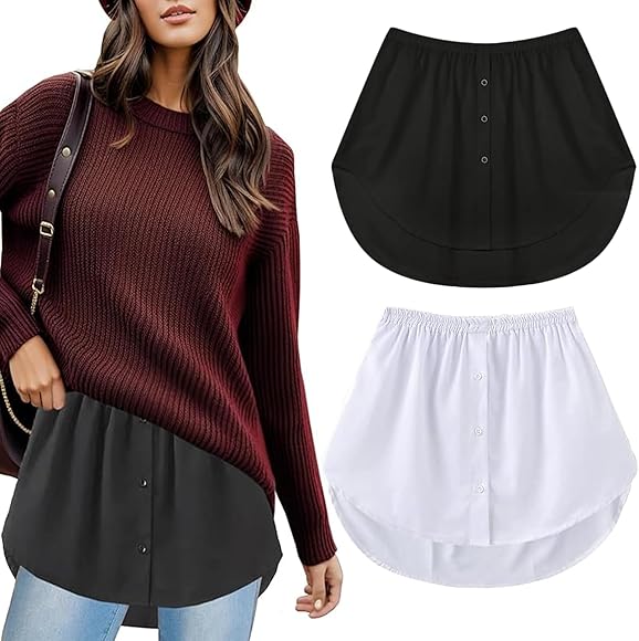Fake blusen rock clearance, MELLIEX 2 Stück Blusenrock Hemdverlängerung Damen Mini Unterrock Shirt Extender Fake Bluse Minirock Saum Röckchen mit Knöpfen - M : Amazon.de: Fashion clearance