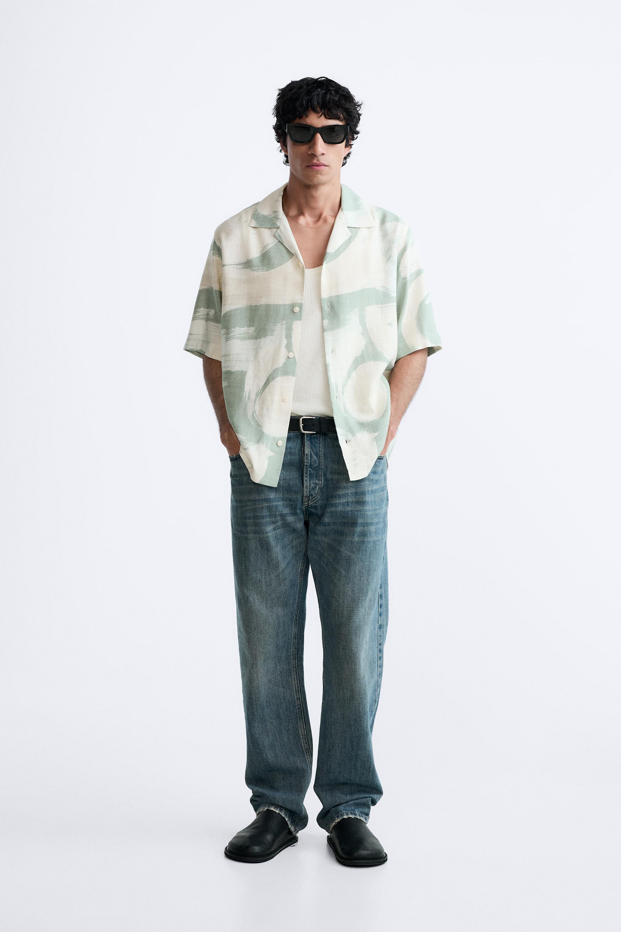 Oversize hemd aus cord zara clearance, HEMD MIT ABSTRAKTEM MUSTER - Seegrün | ZARA Deutschland / Germany clearance