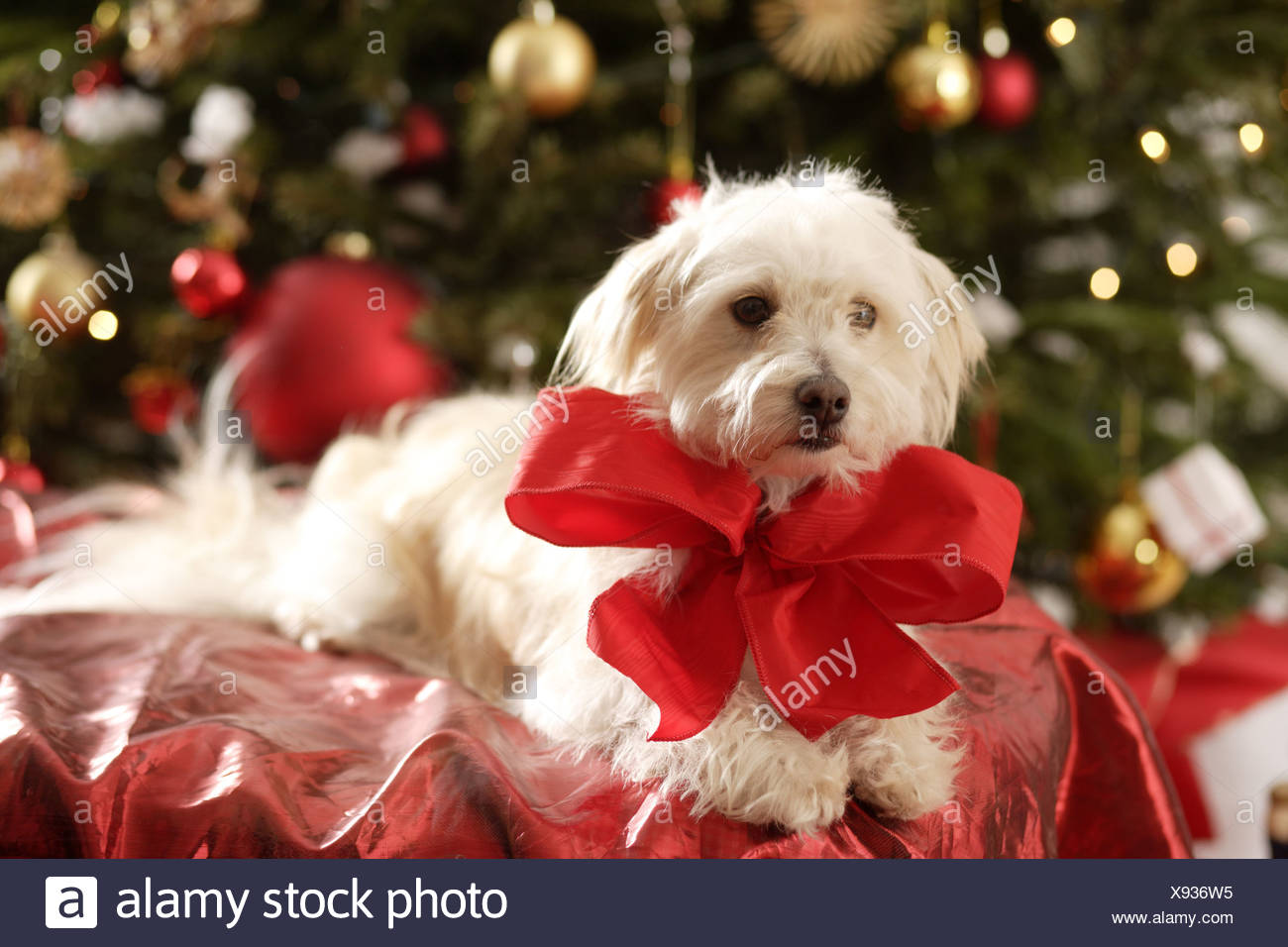 Dog gift bow clearance, Dog Present Labrador With A Big Red Bow clearance