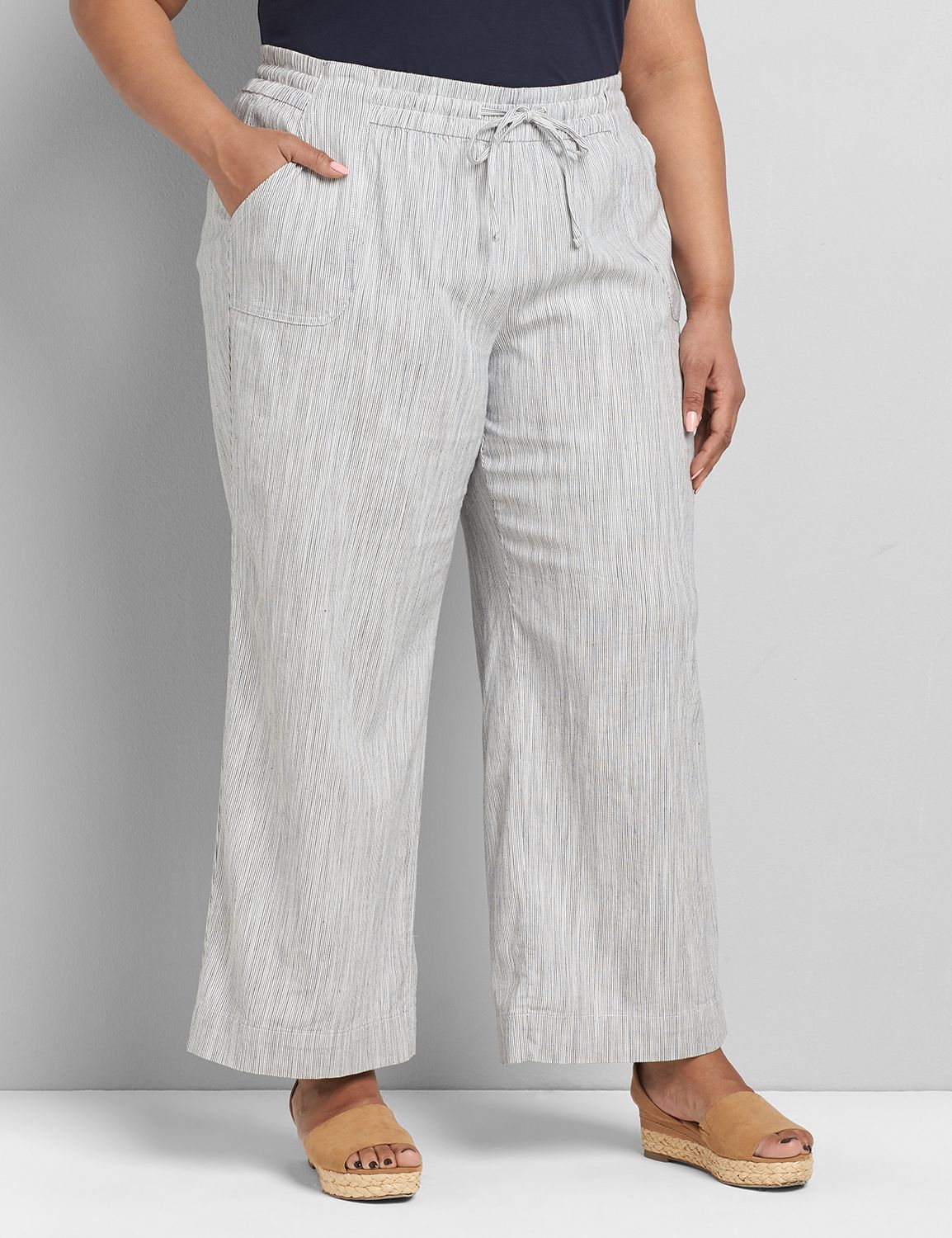 Lane bryant white linen pants clearance, Pull-On Linen Wide Leg Pant - Pinstripe clearance