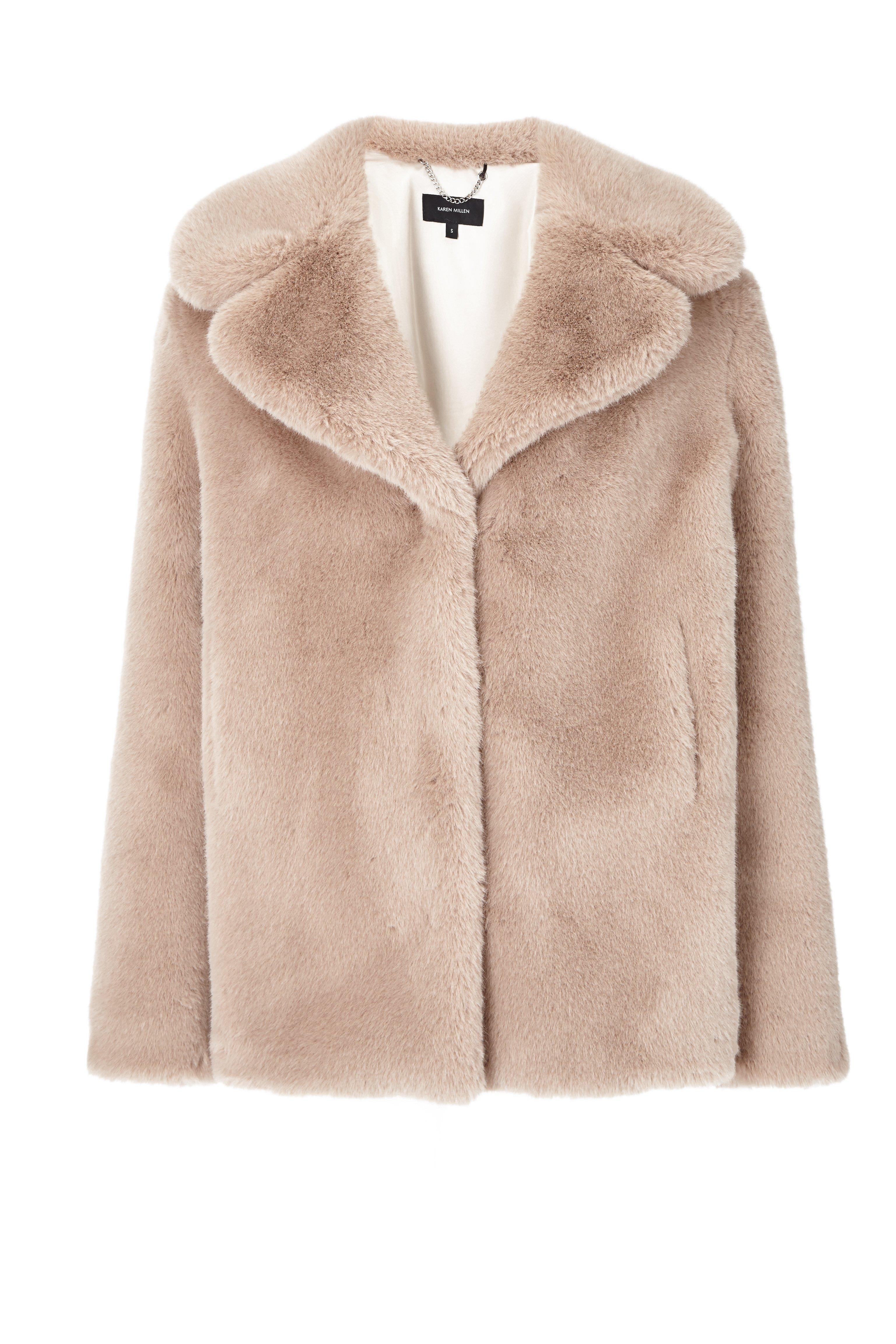 Karen millen faux fur clearance, Wide Collar Faux Fur Jacket | Karen Millen clearance