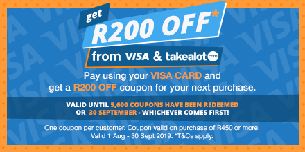 Takealot new account discount clearance, Visa coupon promotion clearance