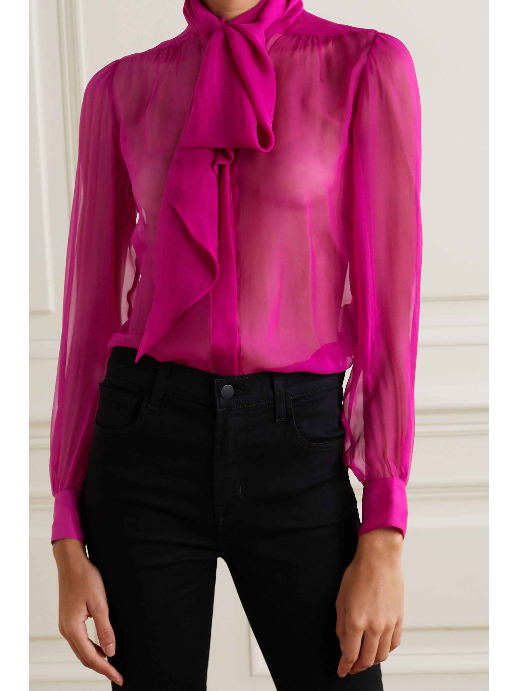 - Pink chiffon blouse with bow shop